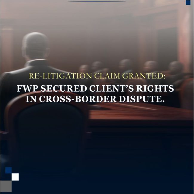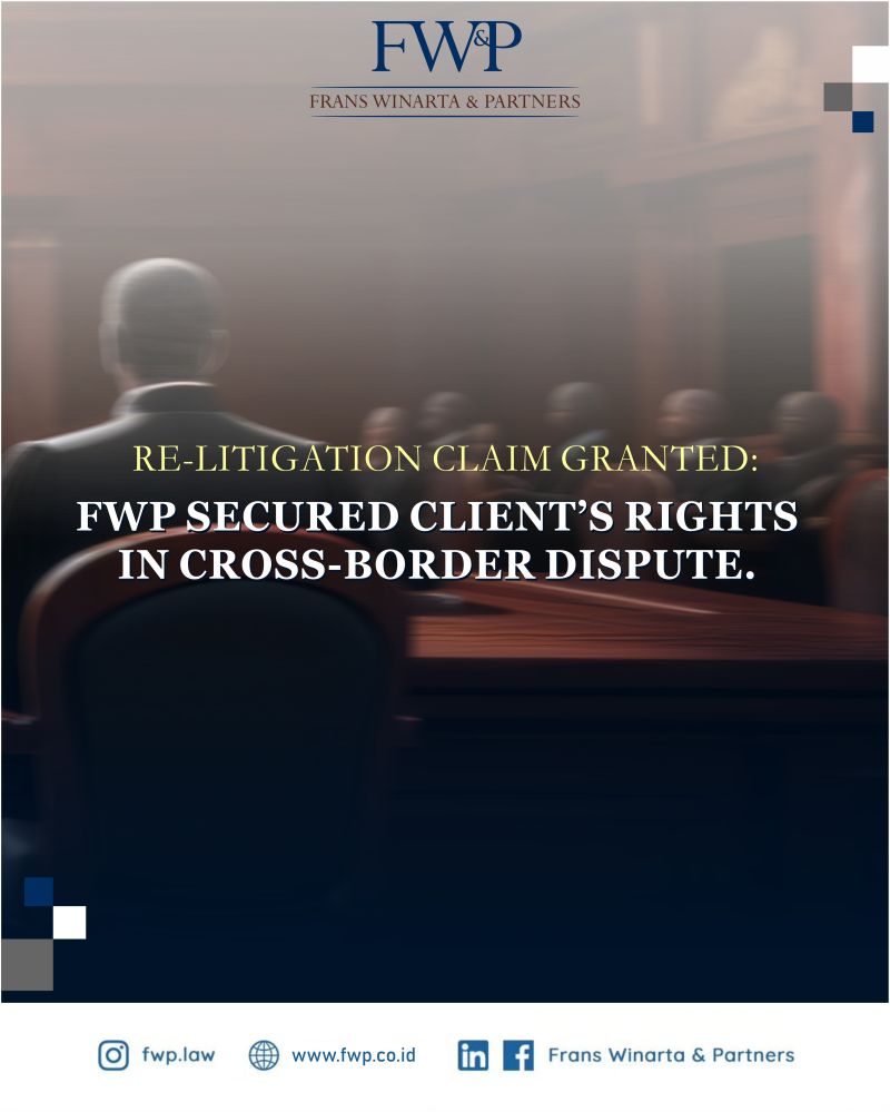 We are pleased to announce a notable achievement by the Dispute Resolution Team of Frans Winarta & Partners. We have successfully represented our client, a leading Singaporean telecommunications company, in a re-litigation lawsuit against a private Indonesian company in the telecommunications sector before the Central Jakarta District Court. Under the strategic leadership of our Senior Partner, Mr. Harri Budiman, together with our Senior Associate, Mr. I Gusti Putu Gandhi Nananjaya, our Middle Associate Ms. Jeniffer Queenstanti, and our other dedicated associates, our team guided the client through this complex cross-border dispute. After a lengthy process, the Indonesian Supreme Court ruled in favor...